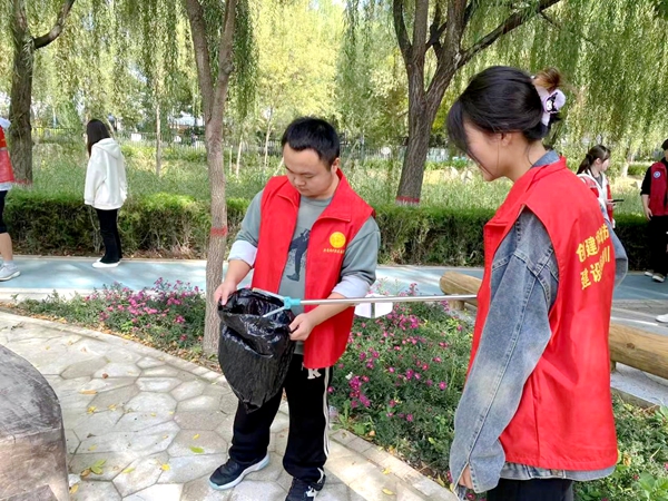 来自辖区的20余名青少年志愿者在工作人员带领下,手持垃圾夹、环保袋等工具,兴致勃勃地投入到活动中。大家以小组为单位,分工协作,默契配合,重点对公园道路两侧、绿化带深处、草坪区域以及休闲广场等公共区域的废弃物进行了“地毯式”清理。纸屑、烟头、塑料包装袋、空饮料瓶……志愿者们不放过任何一个卫生死角,细心地将隐匿在草丛中、角落里的各类垃圾拾起装入袋中。“美”在大家眼里无限延展,除了捡拾垃圾,大家看到路边倾斜的标识牌赶紧上前扶正加固;看到绿化人员在给树刷涂料,赶紧凑近帮忙。“这小伙子,真攒劲!”正在给树刷涂料的王师傅笑呵呵地为帮他提涂料桶的志愿者小勇竖起大拇指。