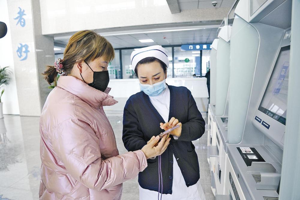 宁县第二人民医院医护人员通过手机App帮助患者就医。