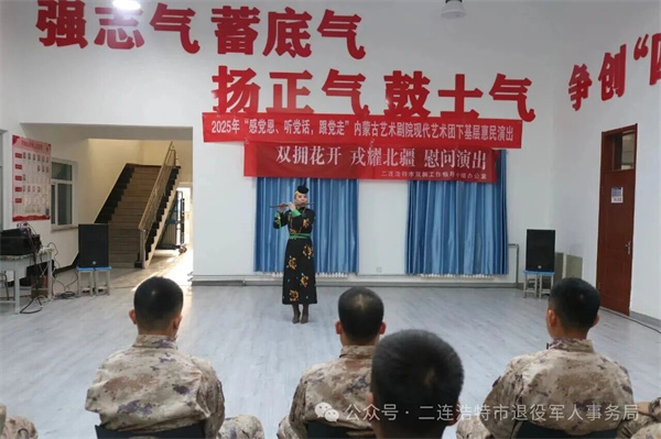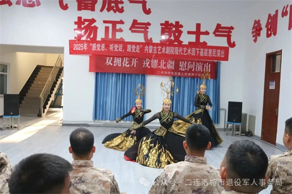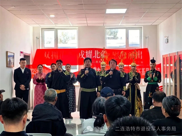 为进一步弘扬拥军优属、拥政爱民的优良传统,近期,二连浩特市退役军人事务局联合内蒙古艺术剧院、市乌兰牧骑,共同走进驻市部队、边防派出所开展“双拥开花 戎耀北疆”艺暖军营共联欢活动,为广大官兵和当地牧民带来了一场主题鲜明、精彩纷呈的慰问演出,将地方的深情关怀与崇高敬意送到军营一线。